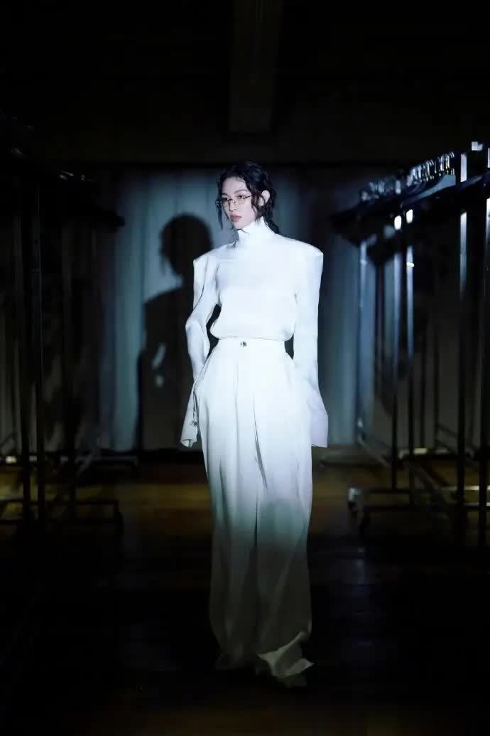 首先不得不夸这件白色缎面套装选得太妙,精准拿捏了高级感!缎面材质自带柔润光泽,并非那种浮夸的亮面,在灯光下泛着细腻质感,高级却不张扬;剪裁更是关键所在——利落的线条恰好贴合身形,既不紧绷也不拖沓,既能凸显身材曲线,又透着飒爽的中性风,完美避开了缎面易显臃肿的问题。